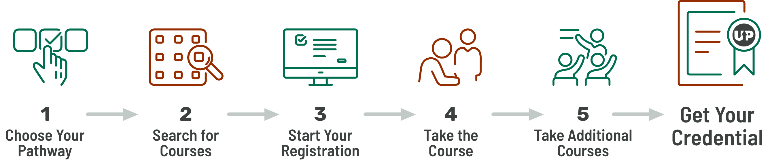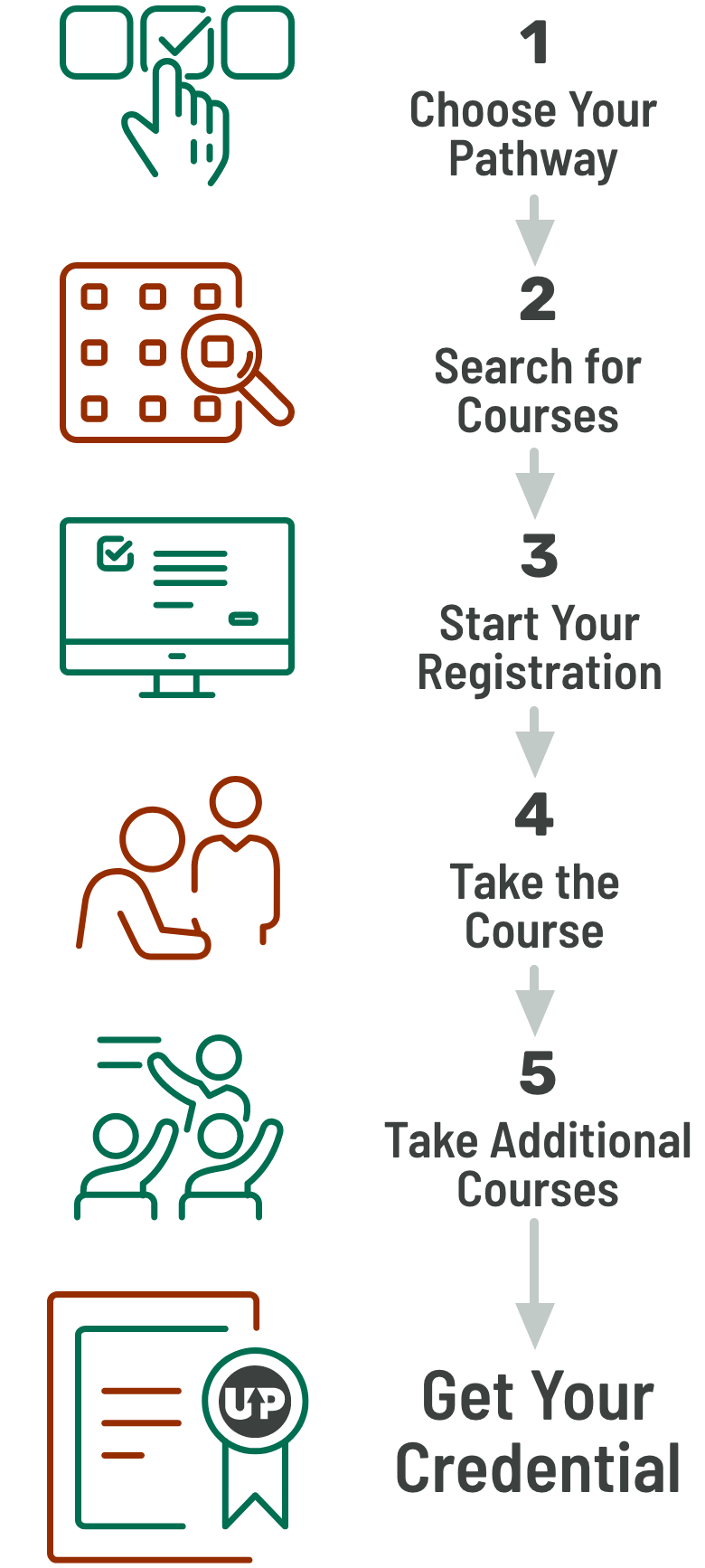 Fit flexible training into your schedule. Offerings are provided through online learning, virtual delivery, in-person, or blended options, including night or weekend classes.