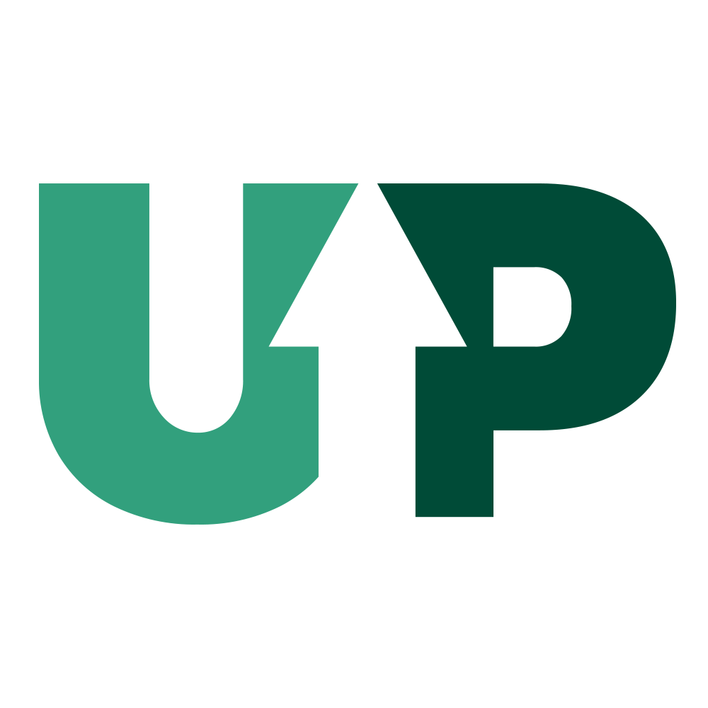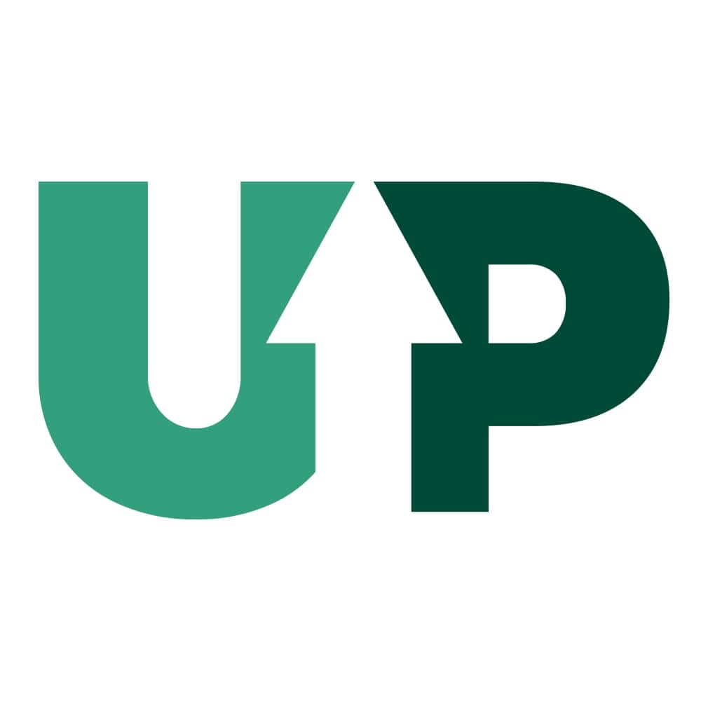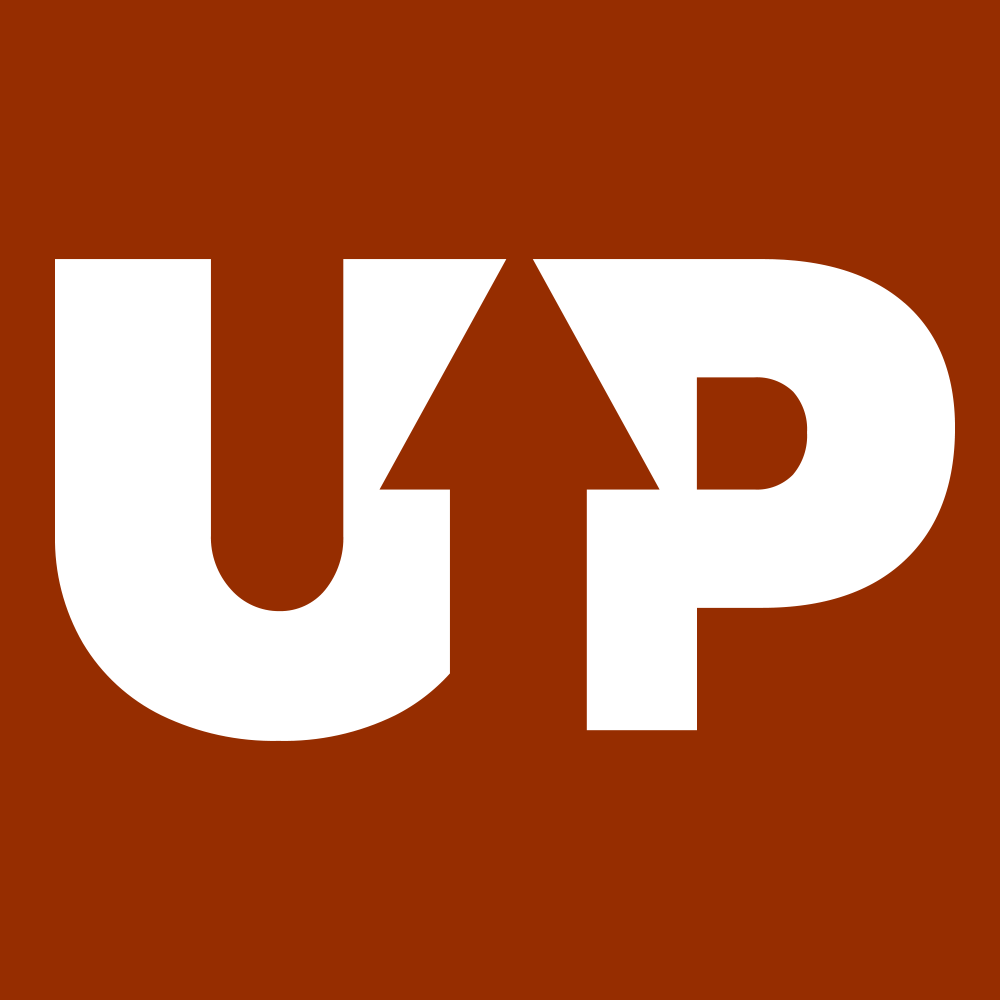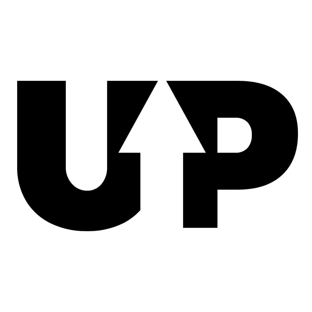 The word UP with the negative-space arrow can be used as a stand alone graphice element.