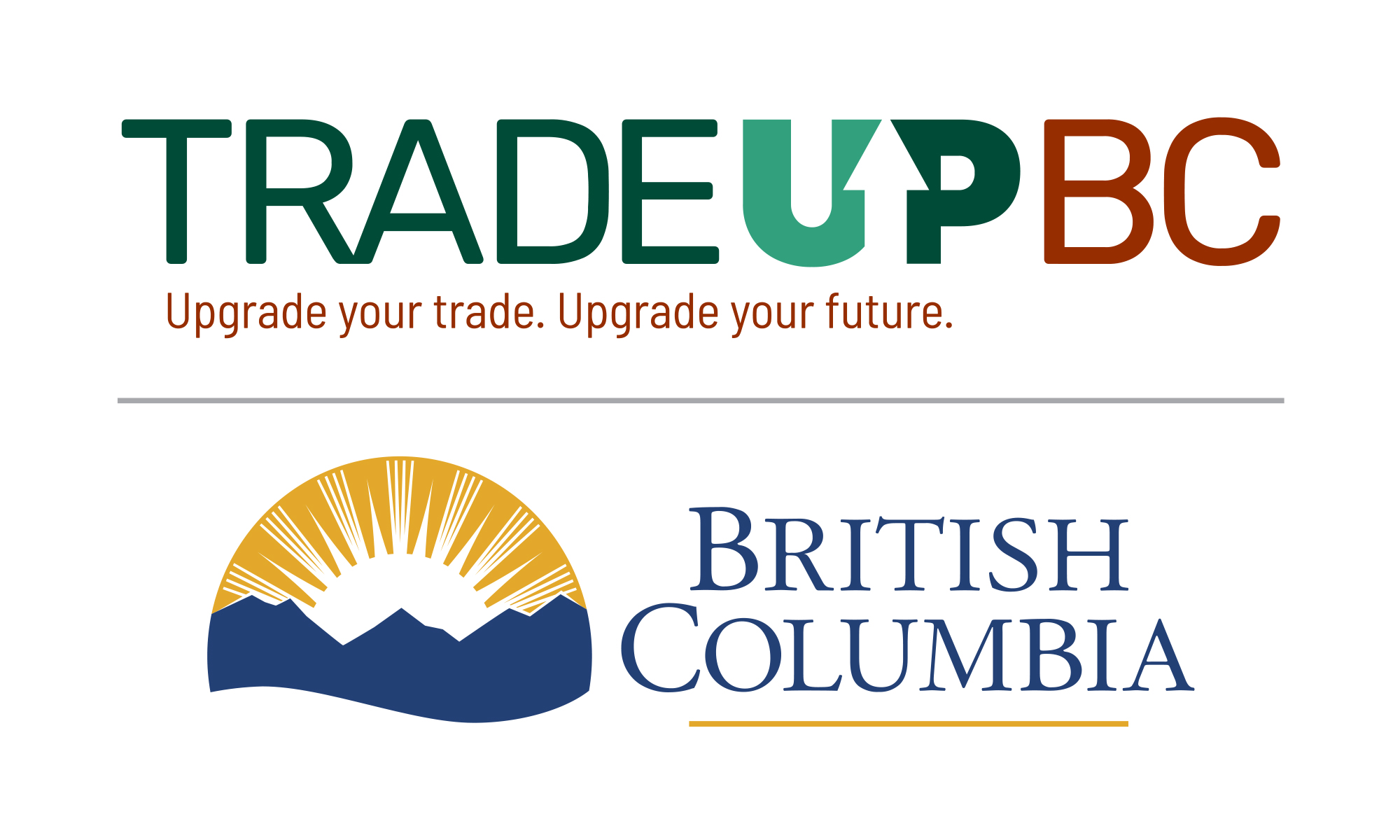The TradeUpBC Wordmark (top) may be used separately from the BC Mark, provided the BC Mark is visible in another location. For example: back cover; inside front cover; or at the bottom of a page. Only in these cases can the scale of BC Mark be altered in relation to the TradeUpBC Wordmark.